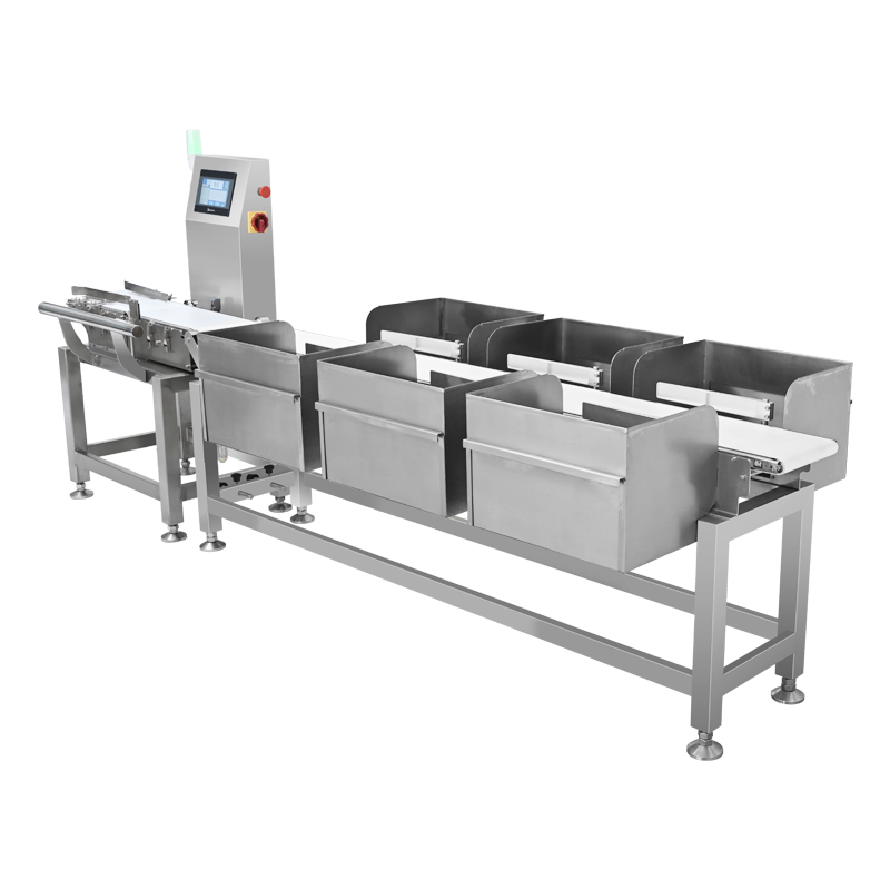 CW series multilevel weight sorting machine can be highly effective applied to food industry like seafood, aquatic product, fruit and vegetable, meat and poultry etc. Multilevel weight sorting machine can separate single product to specific level or weight grade, or weigh deep processing products as who cartons or boxes to check whether the cartons or boxes lack products. Using checkweigher can replace human labor, then save labor cost and also enhance efficiency.